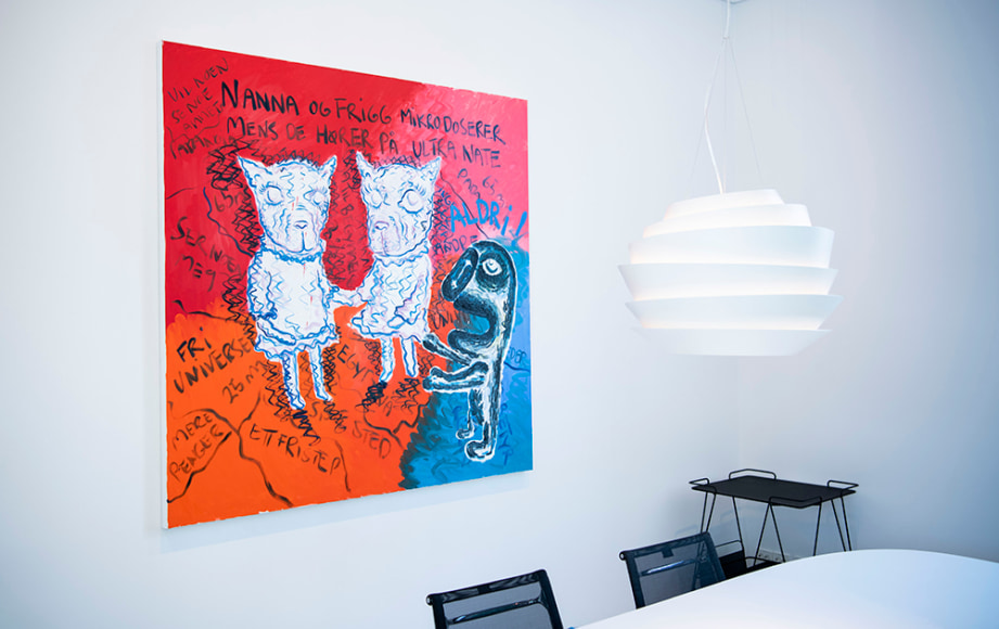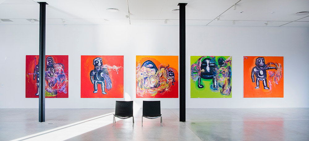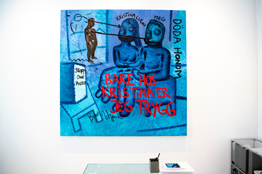 In ”En ost på en sydhavsøy og Chill Out med Kristina Lugn” the creative process of each work has been of higher significance than the creation of an exhibition as a whole. As a result, the paintings are less processed and appear rawer than many of Melgaard´s pervious shows.