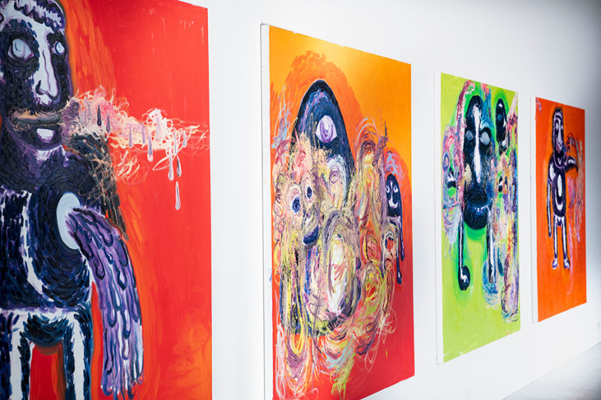 The works examinate the idea of contemporary “Chill Out” are implemented by pen and ink drawings, and are, as the exhibition itself, titled “En Ost På en Sydhavsøy og poeten Kristina Lugn”. These drawings were originally made for the Biennale in Belgrade, “October Salon 2018”, curated by Gunnar Kvaran, director of the Astrup Fearnley Museum. Although the Bienalle did not receive much publicity in the Norwegian media, it did receive substantial media coverage in other parts of Europe. Interestingly Melgaard chose to enhance his show at BGE Contemporary with these drawings as an international element to the exhibition, which is something he finds of importance when exhibition in regional areas, in addition to the satisfaction of bringing the works back home to Norway where they originally were created.