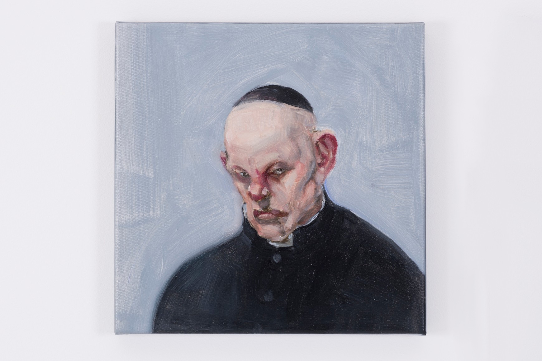 Nature is an ongoing focus in Kvium’s art, which counts human features, as well as human nature and it’s feelings. At the same time, the people portrayed have the same characteristic features with their pale white and hunched back bodies. The characters’ androgynous, hairless heads often have a certain similarity to the artist’s own features. His way of working is similar to the mannerist style, with stretched bodies and limbs, which emphasizes human emotion. In this manner Kvium can illustrate typical stereotypes of the modern human being, where it is their visual attributes that give them personalities. The stereotypes are often recognizable: tourists, nuns, clowns, ballet dancers and artists.
