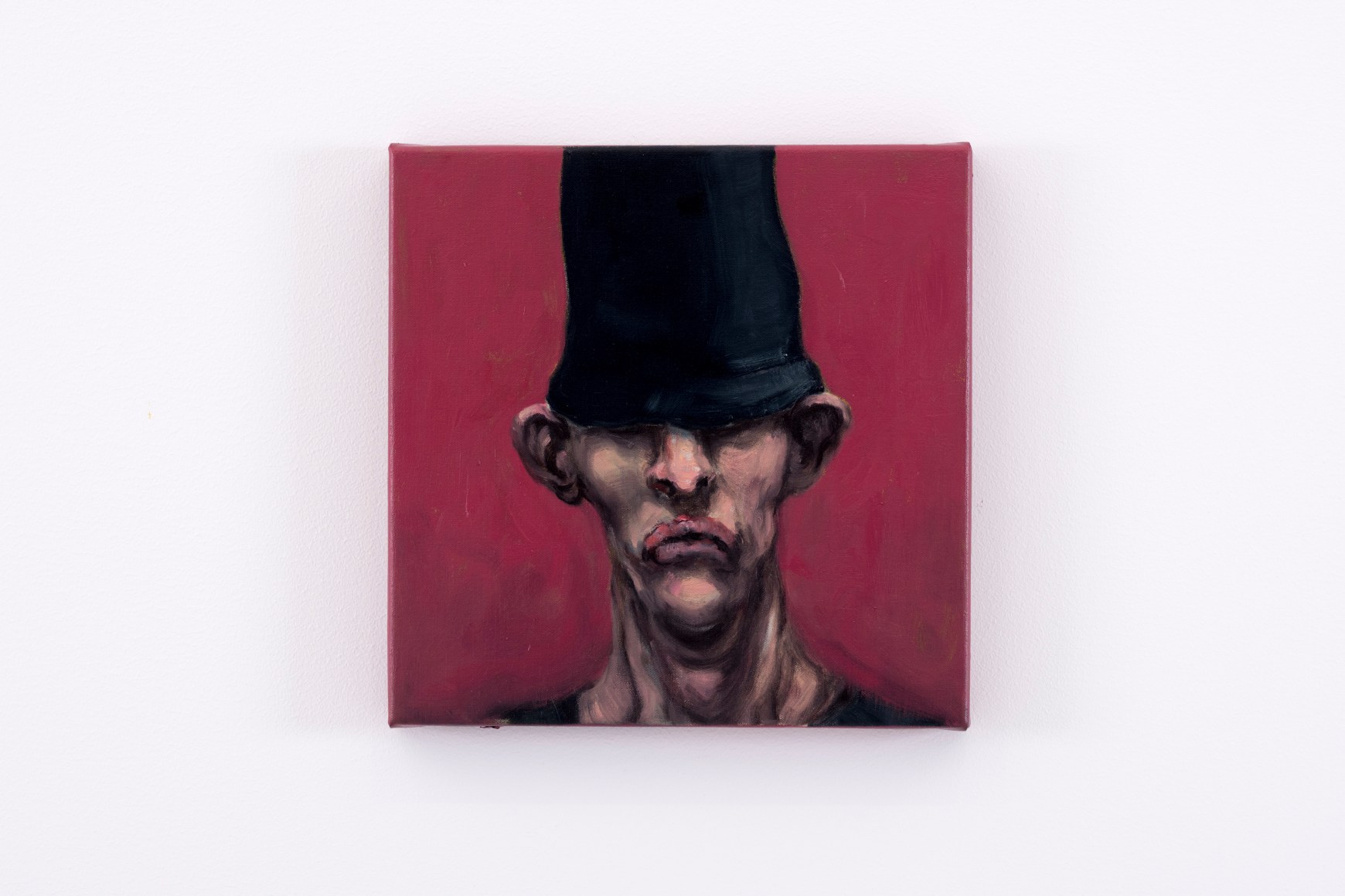 Michael Kvium’s painterly staging contains associations to a theatre stage. As a theater plays a story that unfolds in the interval between the curtain rise and fall, human life unfolds between life and death. This is particularly visible in the way he creates different characters by giving them different clothes, make-up or characteristics of professions or historical people.