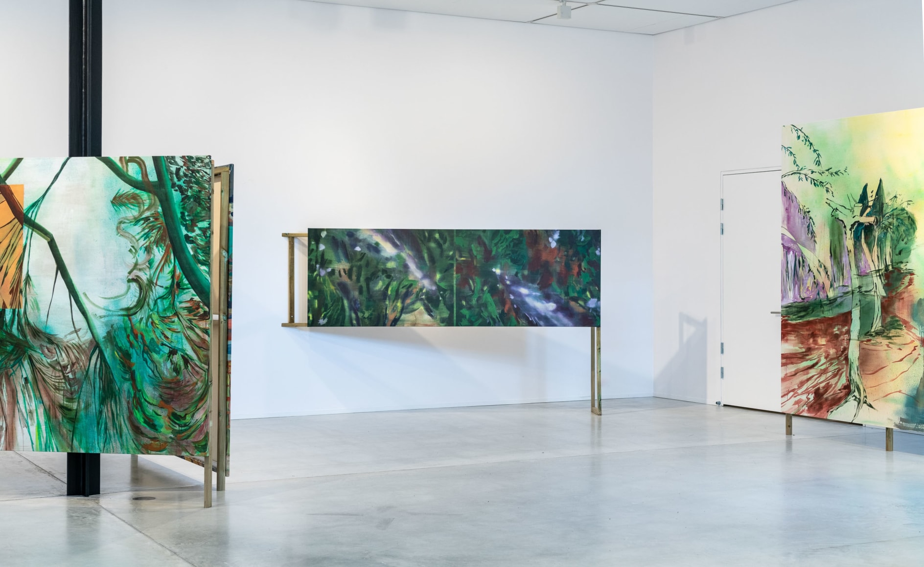 As I work large scale, I have often only been able to experience fragments of my own work; it is in the final exhibition installation that my imagined work comes to exist for the first time. In this way, the works are temporary. They happen in front of me both in the act of painting and in the act of installing.