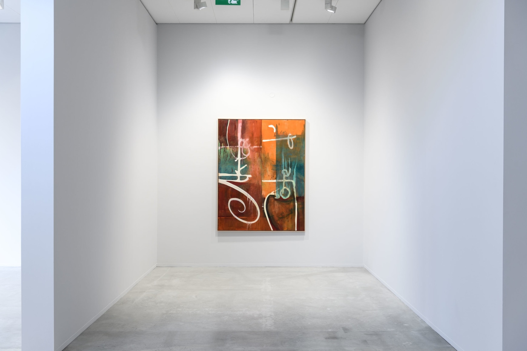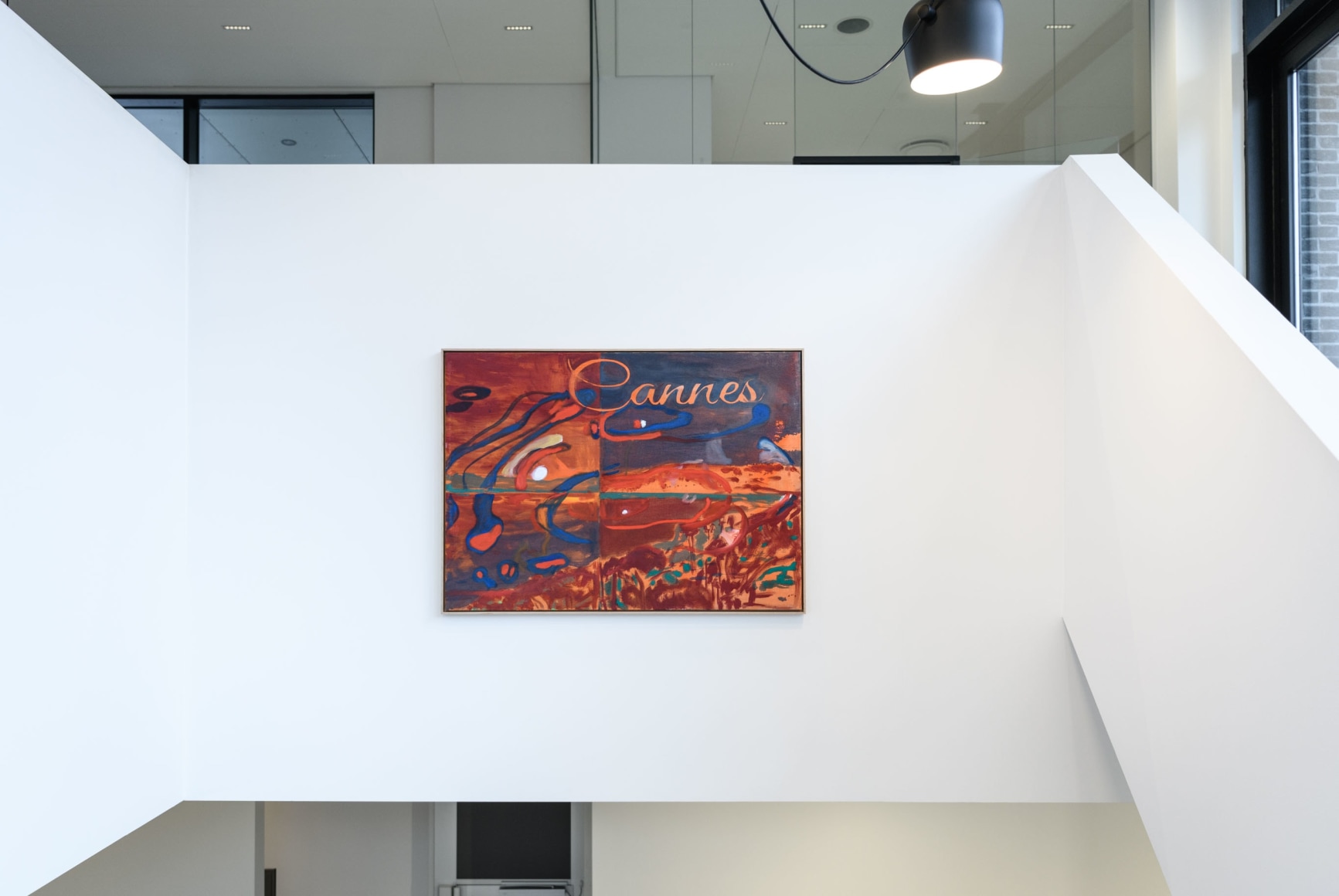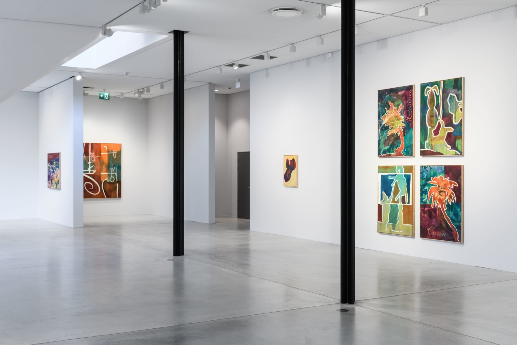 A painting depicting the inviting water from the Cannes riviera lends the exhibition its title, «GREETINGS FROM». Sæther is referencing a postcard. The water is charmingly illuminated by the reflection of the city lights. Postcards famously show us only an excerpt of the place it greets us from – a small, perhaps superficial, piece of a larger story. This painting gives the spectator a clue towards Sæthers ambivalent experiences from Cannes; impressions of glamorous illusions. They are inviting, but like the water that reflects them, the surface is easily broken.