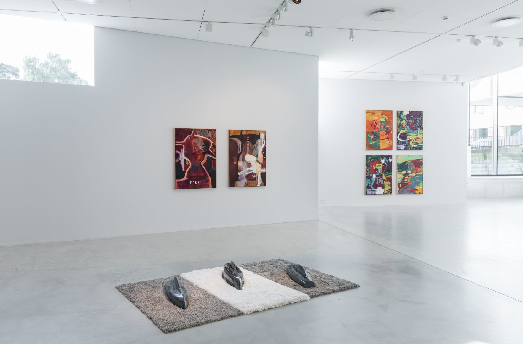 Sæther plays the male lead as the selfish artist Thomas in the film Sick of Myself (2022). The movie premiered at the Cannes Film Festival earlier this year. The paintings and sculptures in the exhibition «GREETINGS FROM» are the artist's processing of his experiences from Cannes.