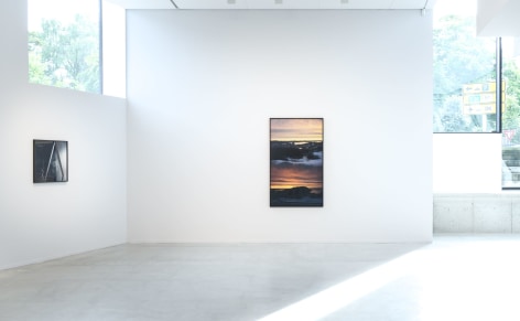 One's choice of perspective shapes how one experiences reality. The first work we see in this exhibition, «Soloppgang» (Sunrise), demonstrates this. The image shows the view of a city where two versions of the same sunrise are weaved together as the result of double exposure photography. A slight shift in the camera’s perspective opens up for questions about what happens when one moves the gaze and changes perspectives. The image points towards the idea that new angles enable different versions of the same story.