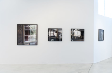 The exhibition introduces us to some of Anker’s earliest projects, like the photographs from Bjerkebæk– and Tanum Church. However, the main focus of the exhibition is her new works, like the brand new series «Forlatt hus» (Abandoned House). Anker’s photography allows us to get a close, intimate look at select details of houses, like window panes, framings and doors. The pictures vary in transparency, and are fleeting between abstraction and figuration: Their compositions are inverted, while having their starting point in something tangible and real. They are on the edge between depicting the real world and making their own autonomous reality within themselves.
