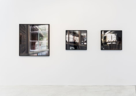 In terms of motif, Anker moves by the outer edges of the house, at the intersection between inside and outside. The sharp spring light creates contrast and change between an all-consuming darkness inside, and a burnt out light where the sun hits the surface of the facade. The photographs were taken while the house was emptied and vacated, and the sense of a final void behind the windows is prominent.