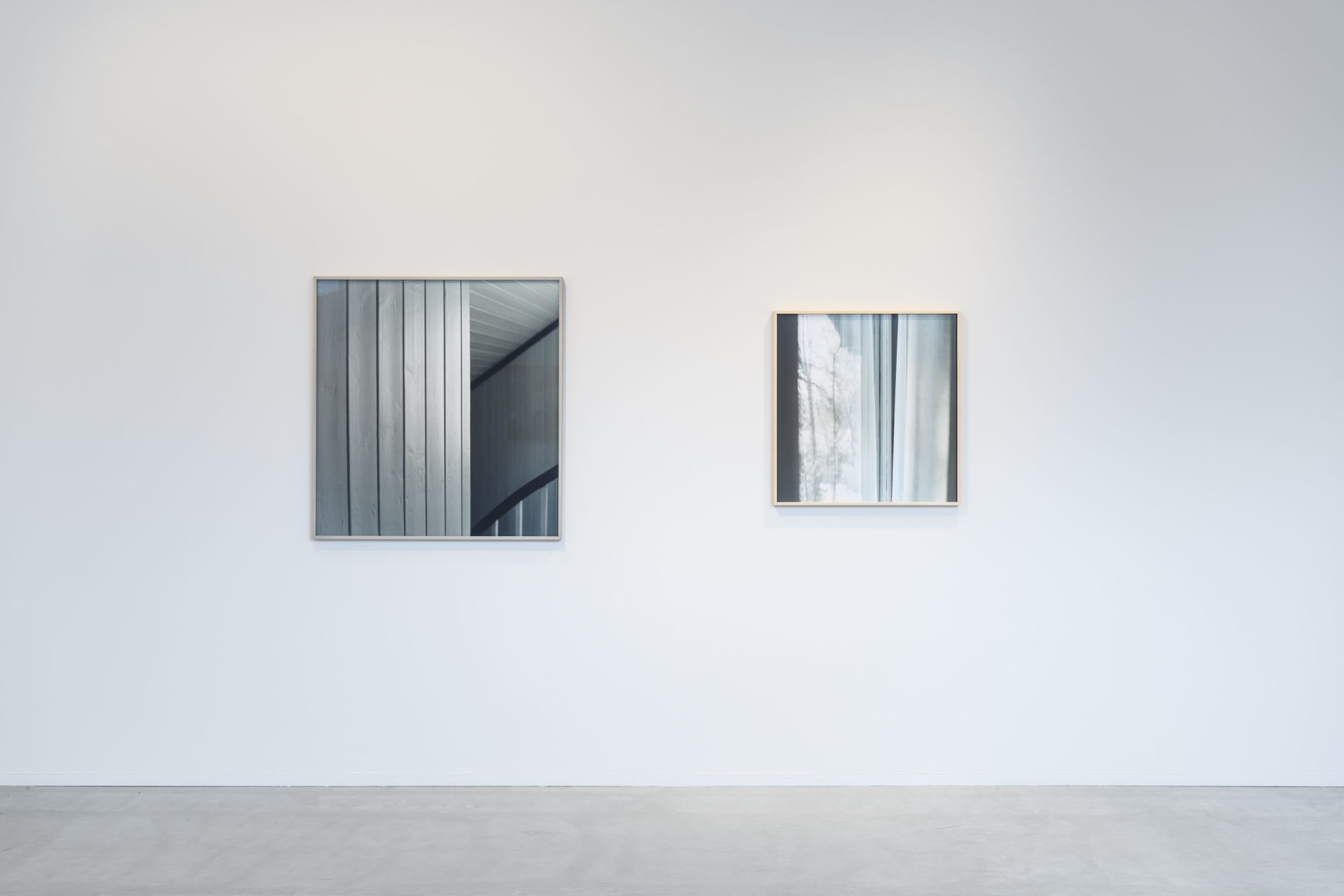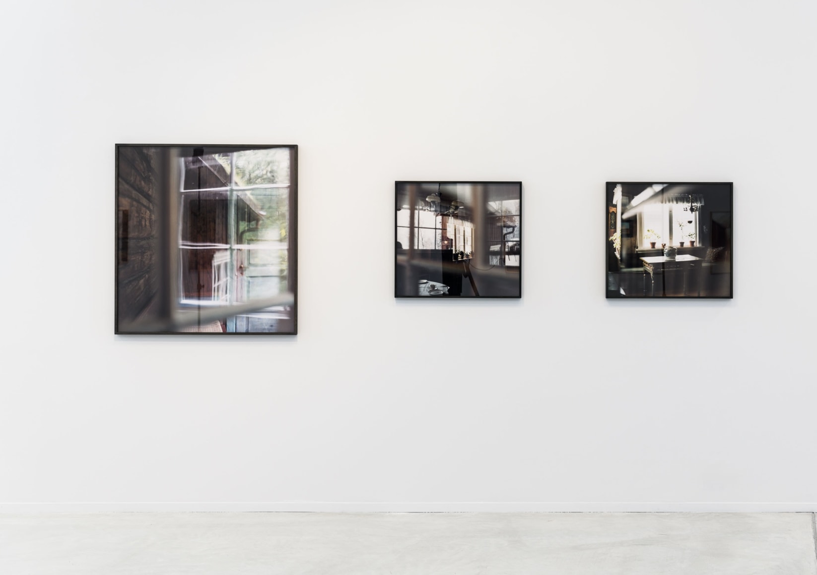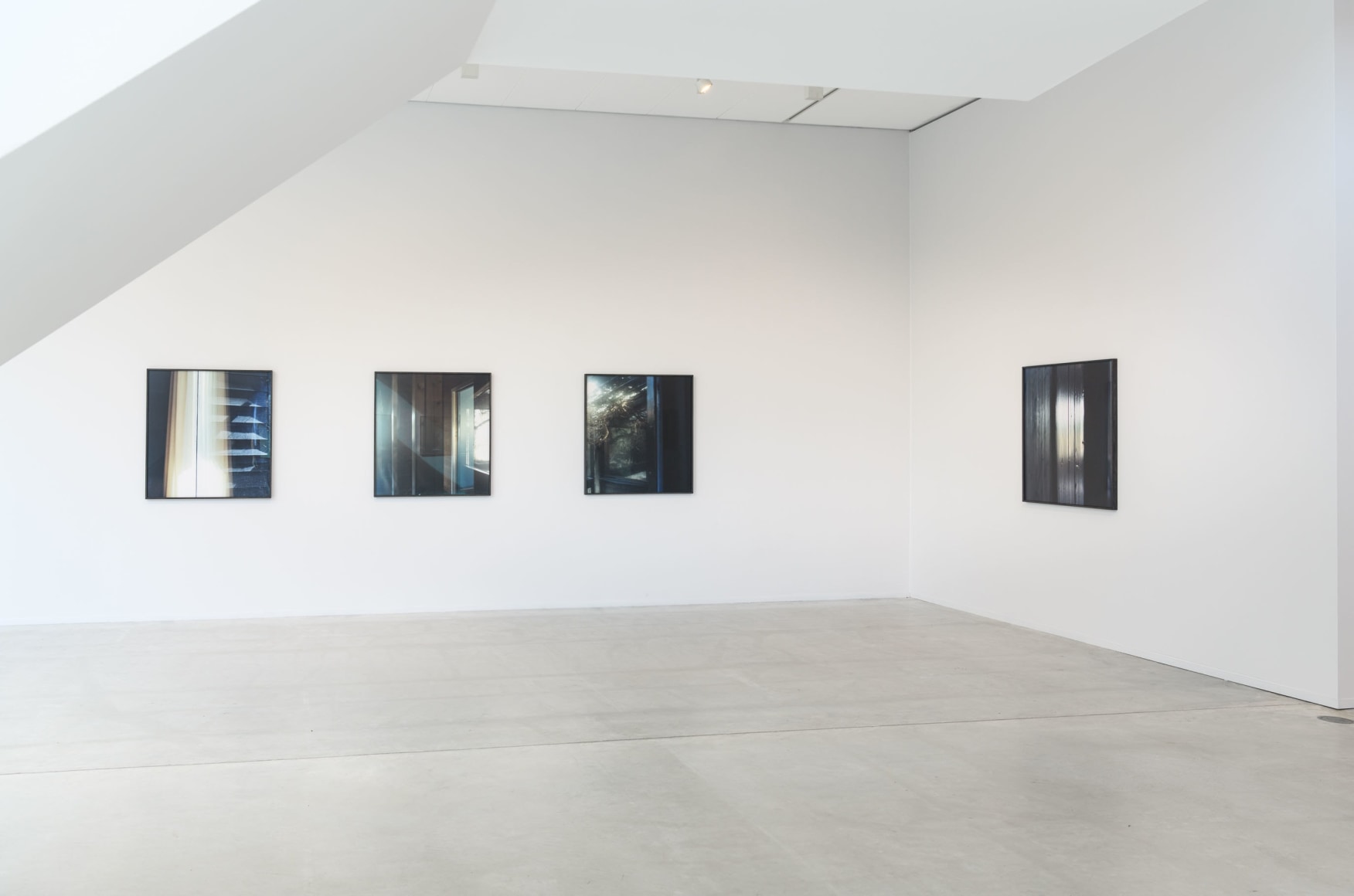 The exhibition introduces us to some of Anker’s earliest projects, like the photographs from Bjerkebæk– and Tanum Church. However, the main focus of the exhibition is her new works, like the brand new series «Forlatt hus» (Abandoned House). Anker’s photography allows us to get a close, intimate look at select details of houses, like window panes, framings and doors. The pictures vary in transparency, and are fleeting between abstraction and figuration: Their compositions are inverted, while having their starting point in something tangible and real. They are on the edge between depicting the real world and making their own autonomous reality within themselves.