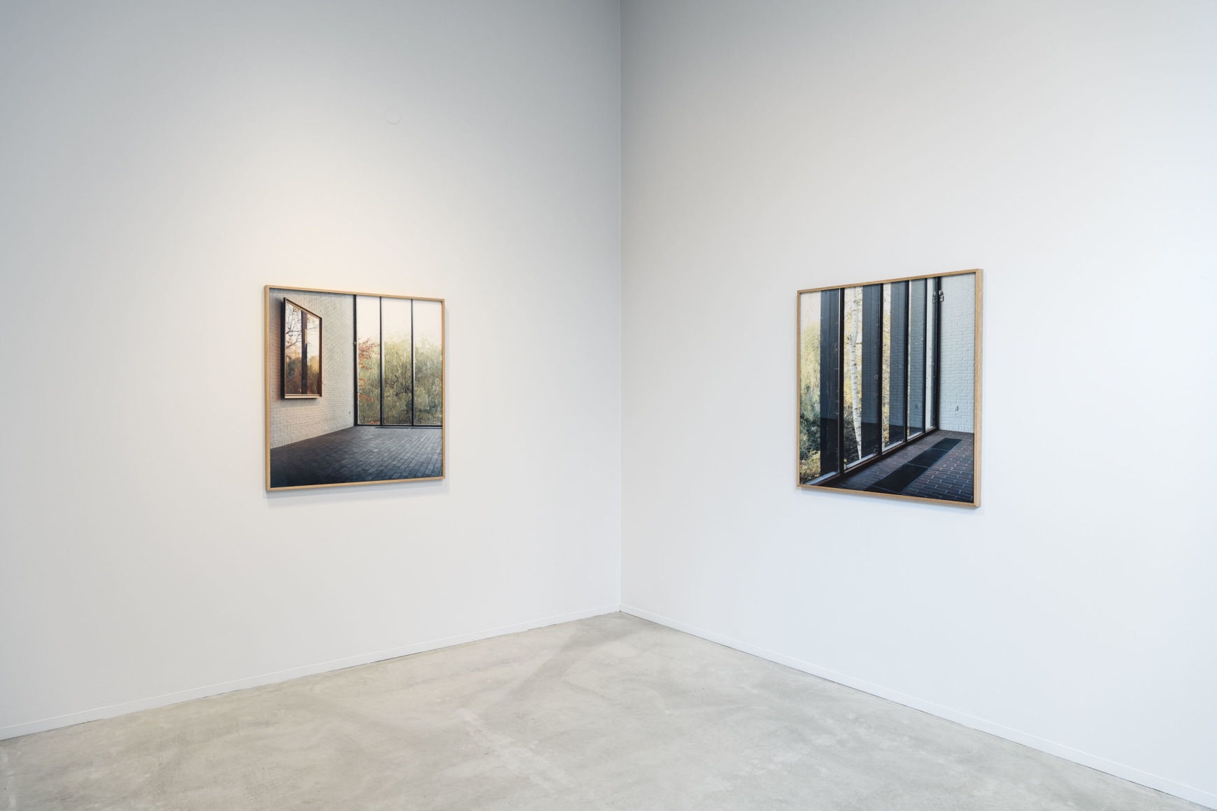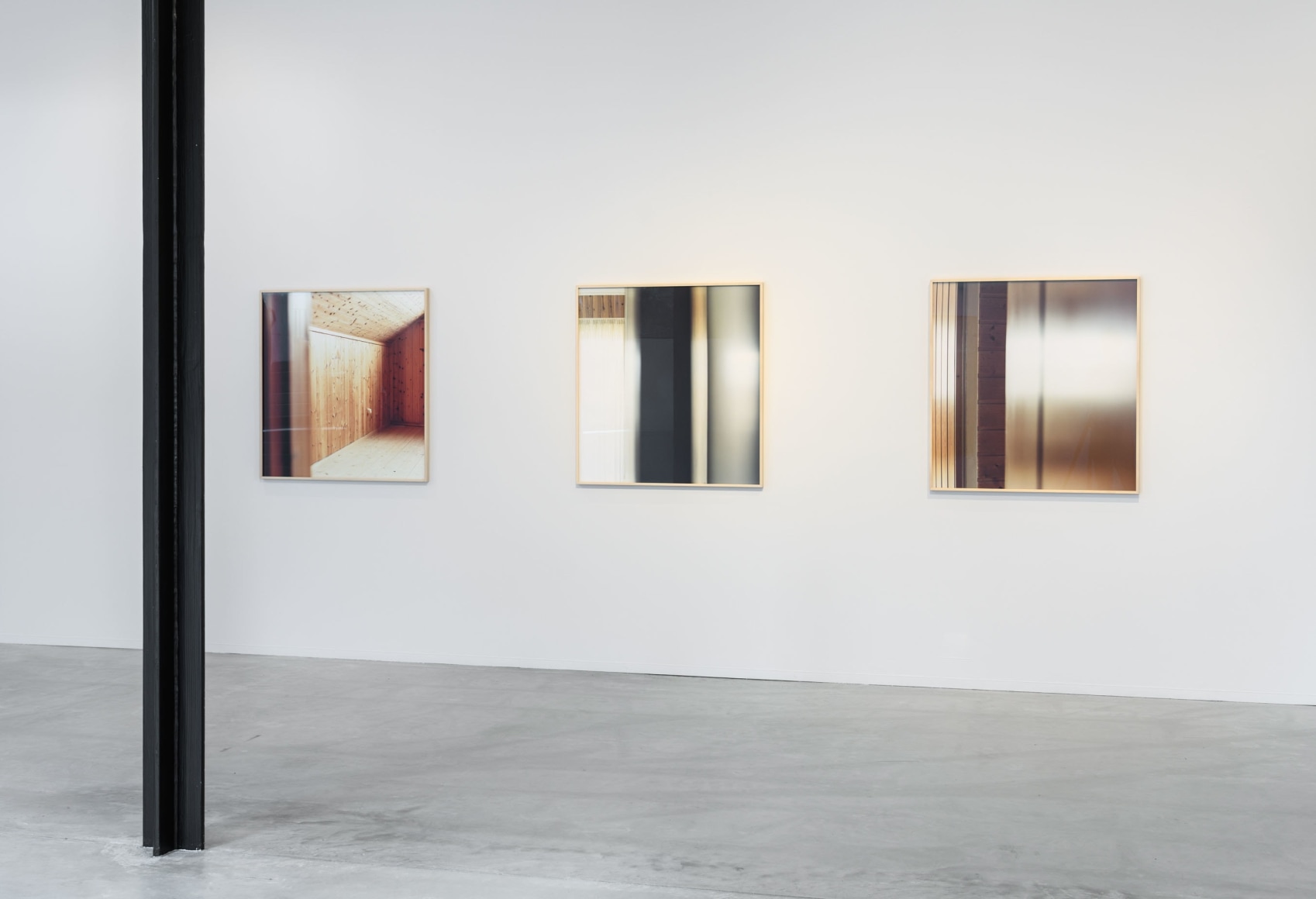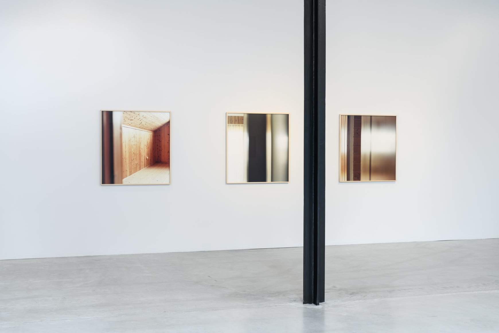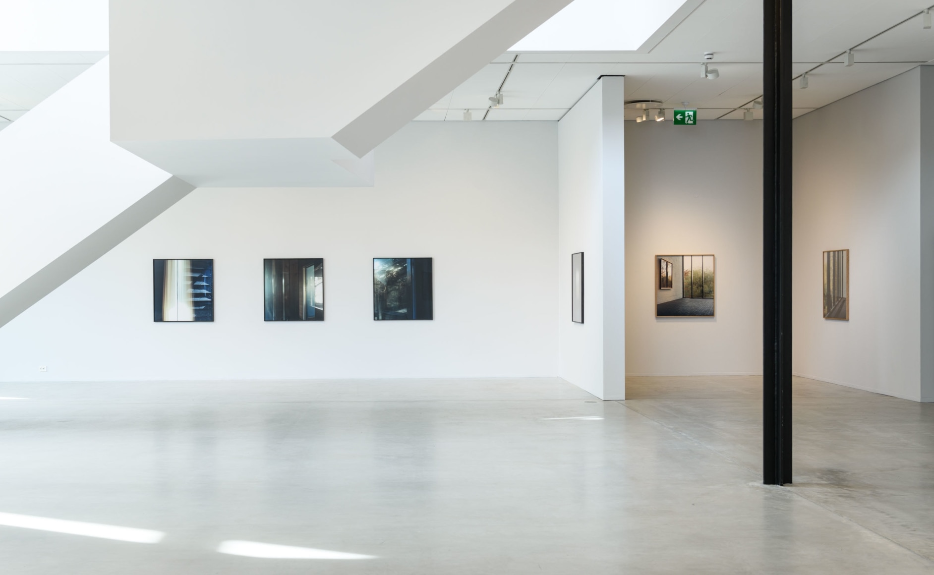 The exhibition introduces us to some of Anker’s earliest projects, like the photographs from Bjerkebæk– and Tanum Church. However, the main focus of the exhibition is her new works, like the brand new series «Forlatt hus» (Abandoned House). Anker’s photography allows us to get a close, intimate look at select details of houses, like window panes, framings and doors. The pictures vary in transparency, and are fleeting between abstraction and figuration: Their compositions are inverted, while having their starting point in something tangible and real. They are on the edge between depicting the real world and making their own autonomous reality within themselves.
