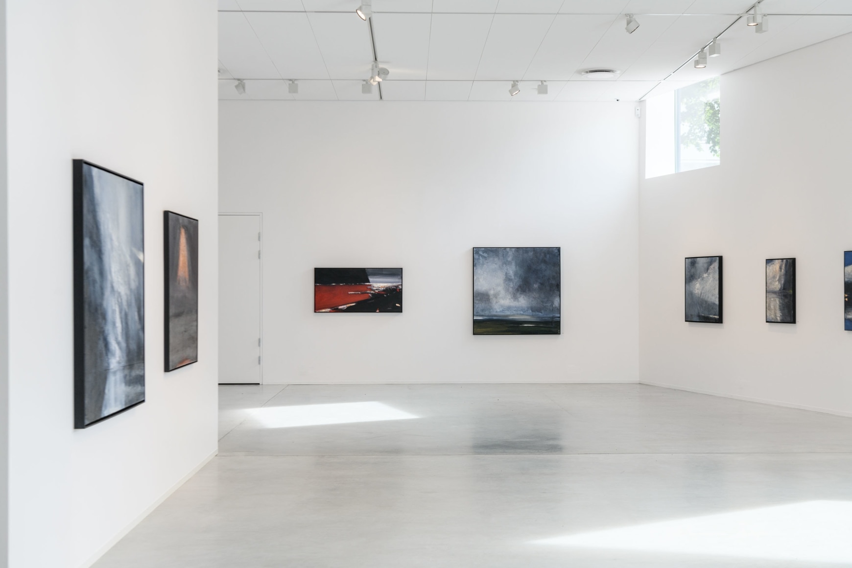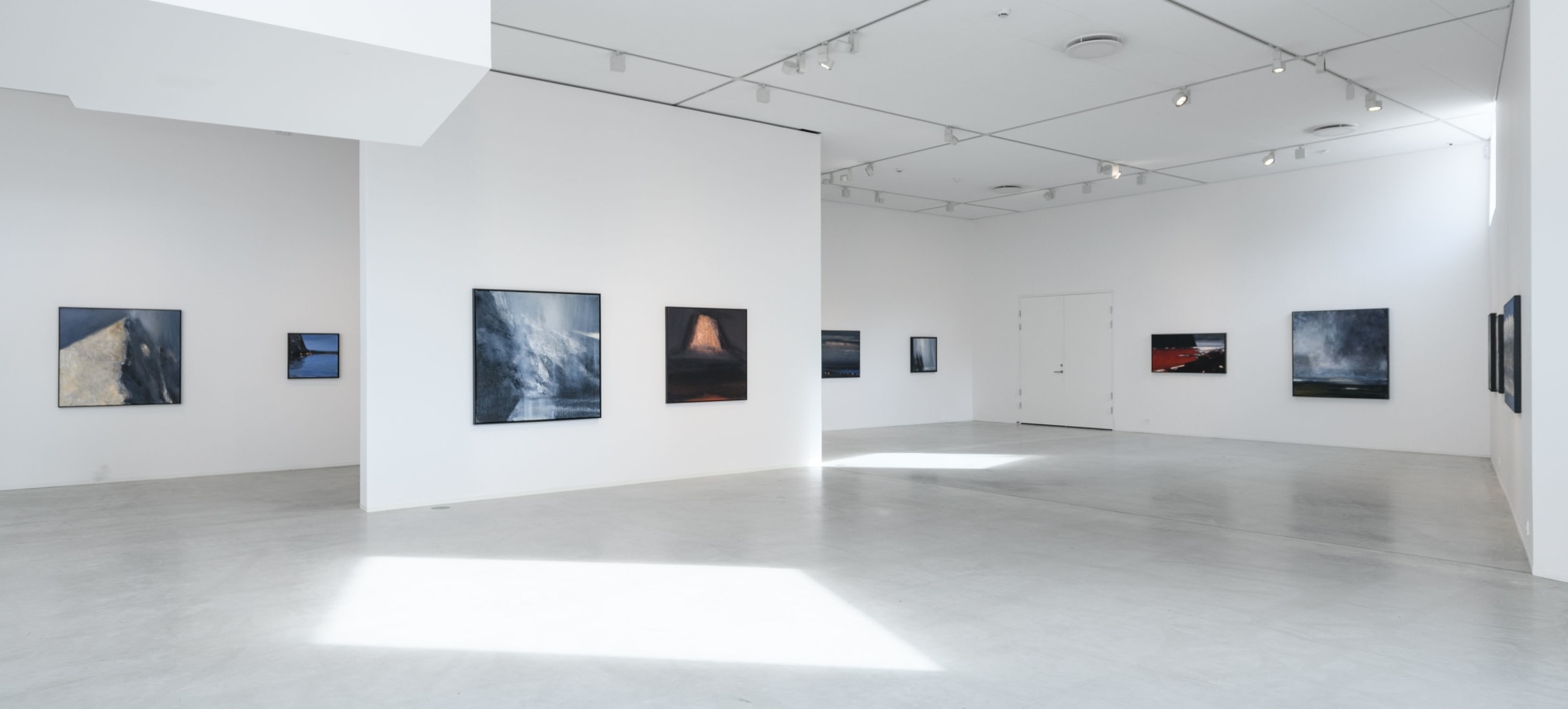 The exhibition portrays landscapes and experiences from the native landscape of the island Hjørundfjord, where the artist has been living for the past 50 years. From the mighty, mountains and fjord home in the east - to the coast and the sea landscape to the west which stretches across the North Sea to the Orkney Islands and Shetland. The ever-changing seasons and the climate with its evolving weather conditions in this dramatic nature is a constant source and inspiration for Opdahl’s new paintings.