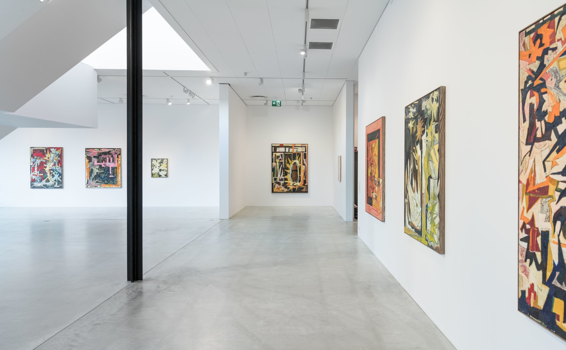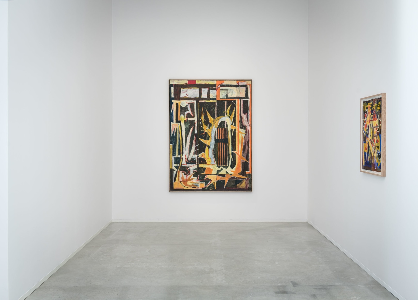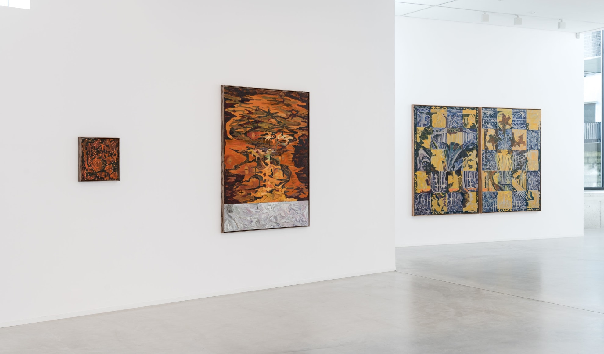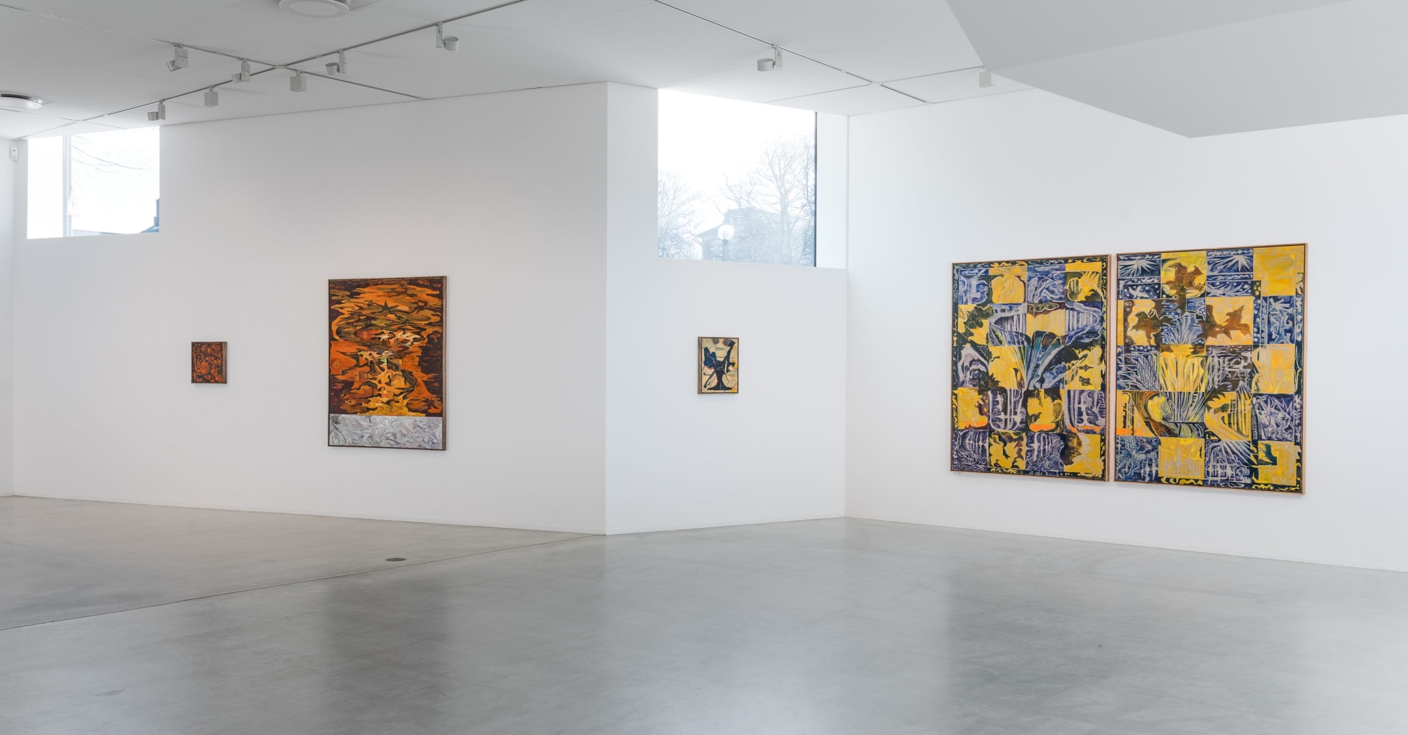 Soft brush strokes are contrasted with something harder, and the media's tropics are set in motion. Abstract and coloristic references flourish in Sørfjordmo's paintings: indicators towards painterly masters include Andreas Eriksson, Asger Jorn and Per Kirkeby. A Nordic “Forest floor” mentality, with an eye for lasting nuances, rooted texture and topographical patchwork, is sharpened against expressive picturesque edges and angles. Big gestures from the 1980s and exaggerated use of colour, represented by an artist like Rolf Hanson, are never far away.