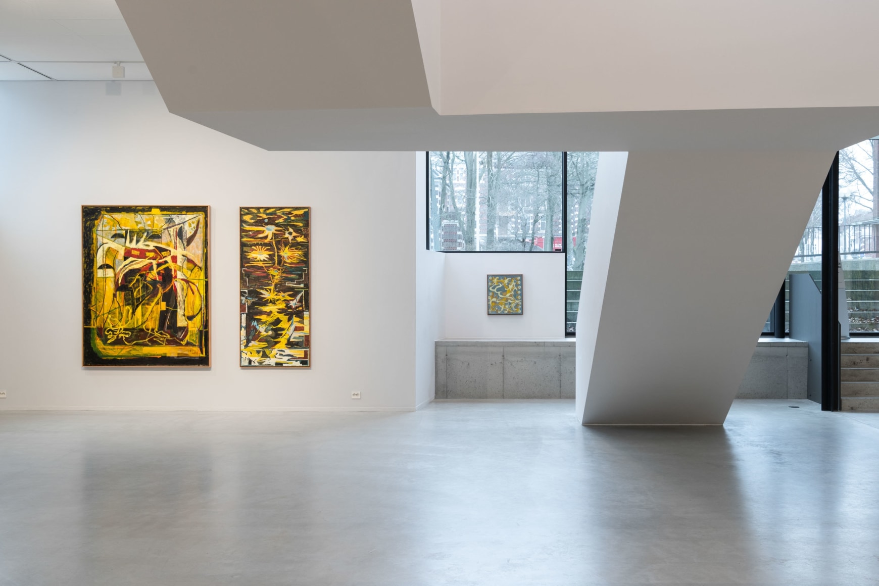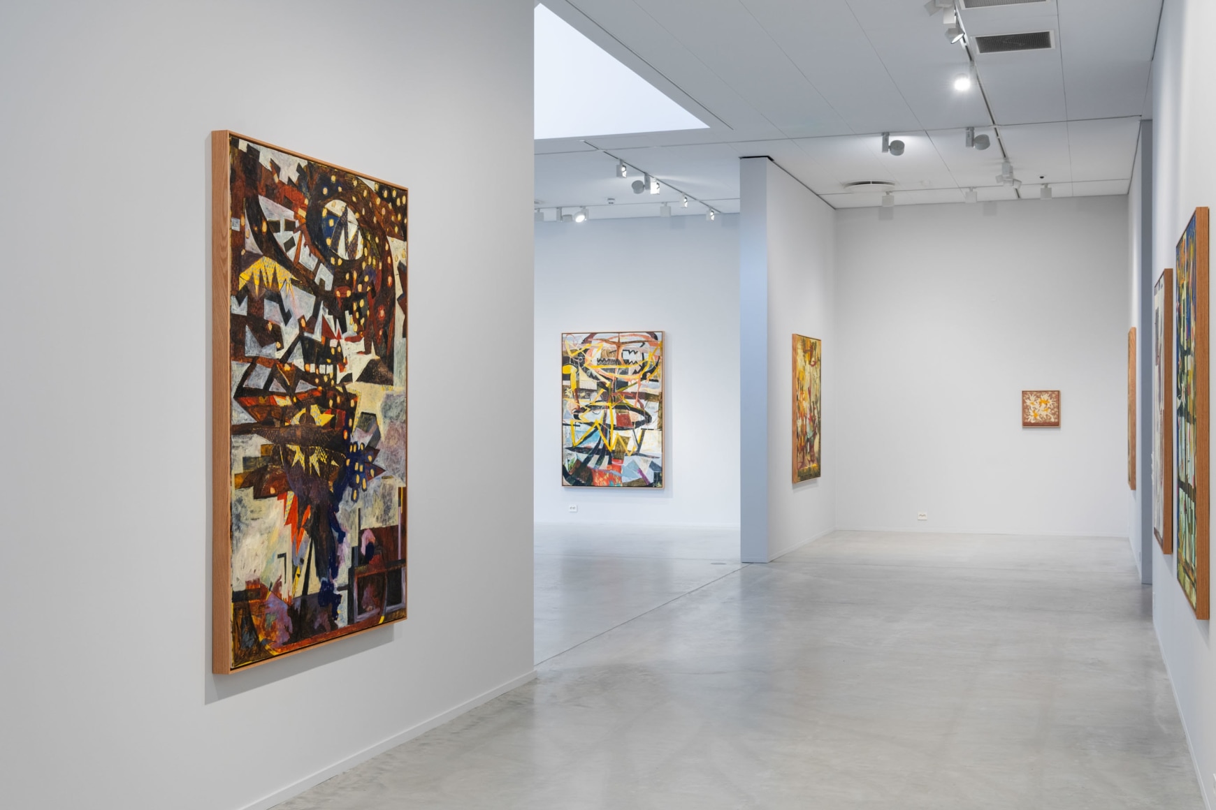 Sørfjordmo’s paintings are characterised by extensive processes. Compositions and motifs emerge gradually as a result of the interplay between chance, control, and spontaneous decisions that are made in-process. The first layer of paint dries completely before the next is applied. He paints on both fine cotton canvases and coarse linen. The properties of the material, combined with the texture of the oil paint, influence how the brushstrokes appear on the canvas. The paint may be applied in small dots, while other strokes are bolder and more expressive. Other times, unintended details also influence the process. The paintings are abstract, yet they evoke associations with landscapes, constructions, and recognisable figures.