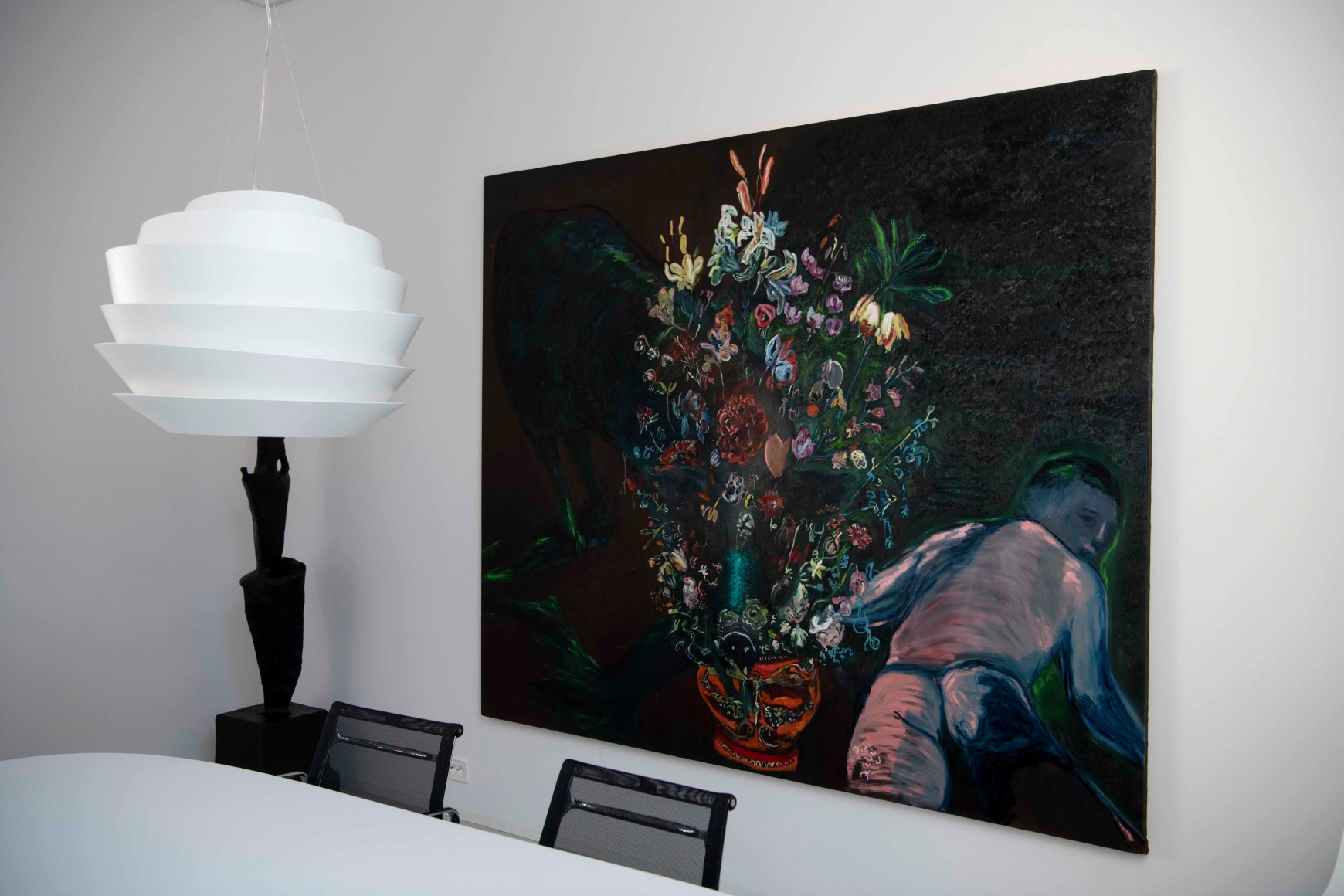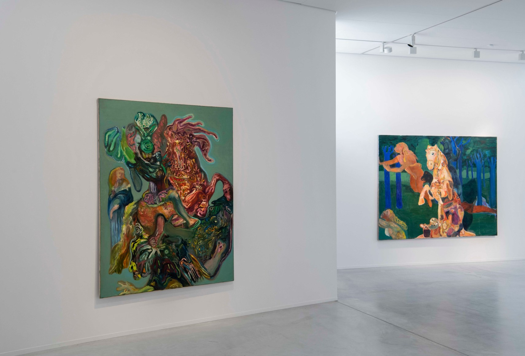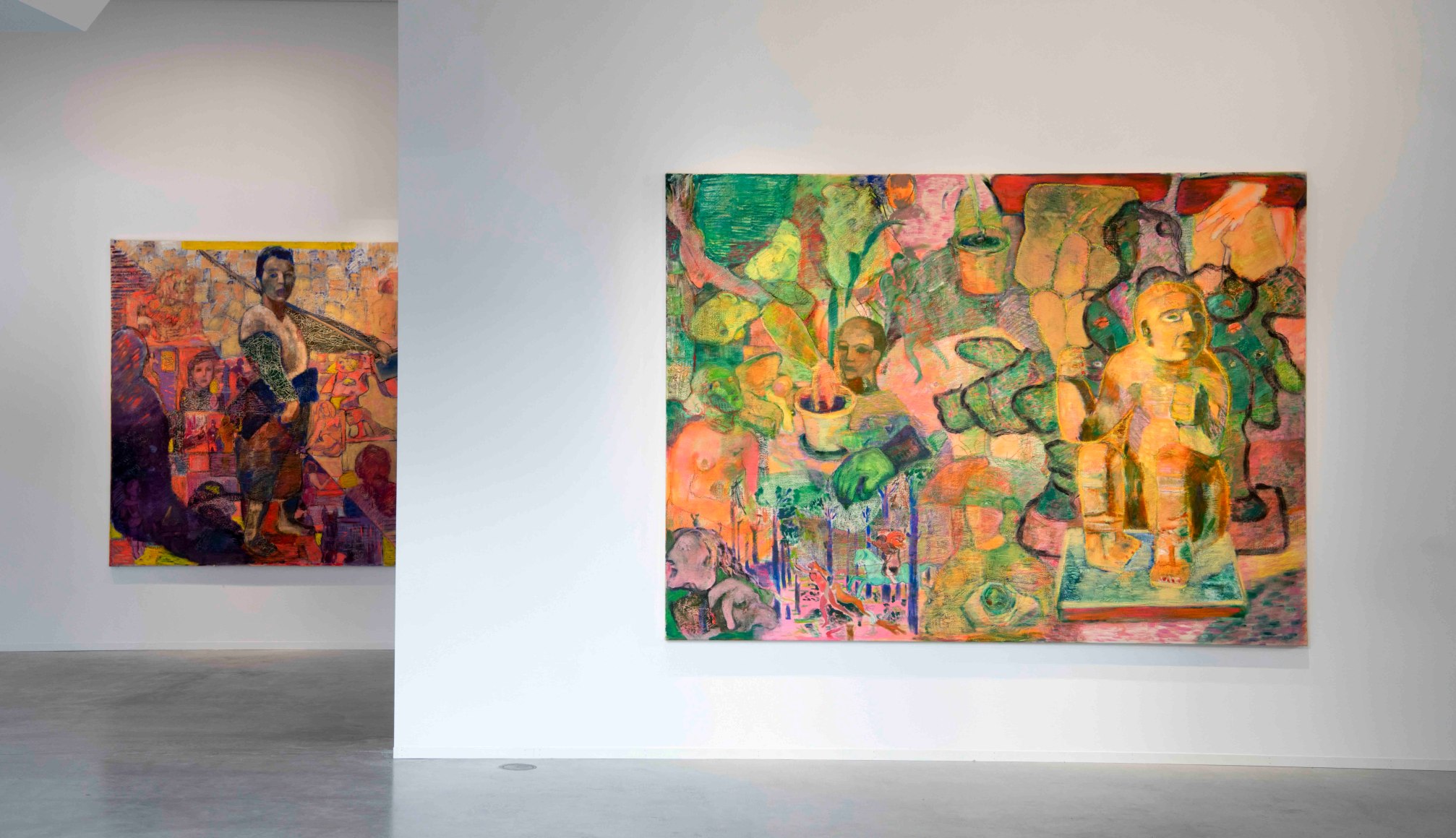The title of the show “The Babel of bric-è-brac”, is of French origen from the Victorian area and refers to objects with low value. The title has an an ironic connotation and which describes Angelini’s analysis of her own journey as an artist, imaginative archive of personal memories and a fragmented reality of art history which results in her distinct vision of the world. Thus the imagery displayed in Angelini’s paintings may be differently interpreted by spectators, and may result in “a babel of bric e brac”; objects without sense. Each spectator will have an individual point of view, and create their own personal relationship with her art.