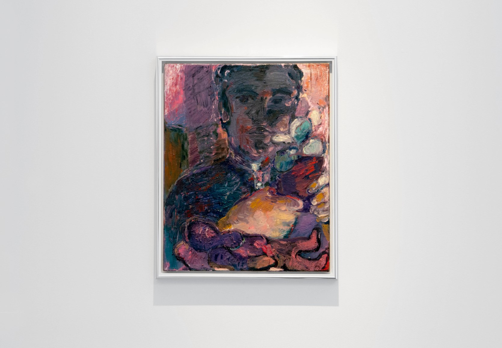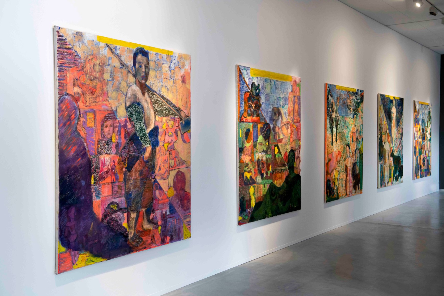 “The Babel of bric-è-brac” reviews Angelini’s journey as an artist; from her first paintings depicting landscapes on big canvases taken from her memories, to painting people as subjects while exploring the Venetian tradition of painting, her teachings by Norwegian artist Bjarne Melgaard, and recently focusing on objects as her subjects, allowing the canvas to develop into a bi-dimensional malleable surface.