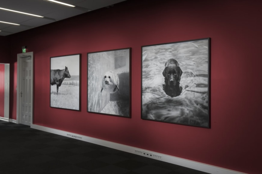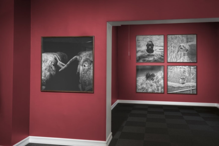 When viewing Maning’s work, one notice how he creates a fine line between man and nature, by mainly portraying animals we keep in our homes, farms and zoos. Maning began portraying animals in the early 80’s, when he started photographing his sick Labrador retriever, Leo, every day of the last three years of his life. Two of the photographs from this project are represented in the permanent collection at The Museum of Modern Art in New York. In addition to reflecting the growth of Maning’s own self-awareness in the process, the project reveals the dog’s identity, energy and spirit, without documenting his physical decline.