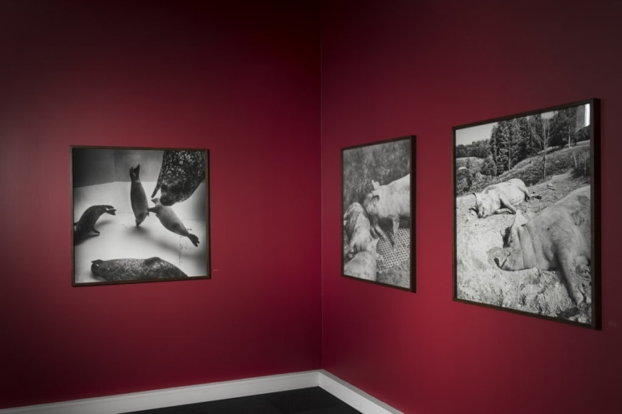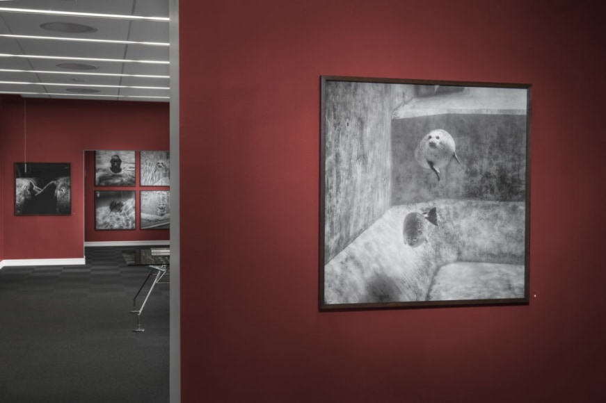 In 1988, Maning patiently portrayed a group of seals in aquariums, which are toned black and white photographs represented Norway in the Venice Biennale in 1995. As they swim by the aquarium glass, as elegantly abstract as they are eloquent, they do not seem as animals anthropomorphized zoo victims. They are represented as creatures with soul and psyche, whose existence reminds us of the animals in each of us.