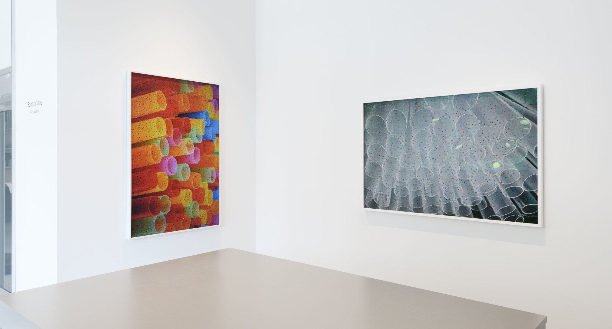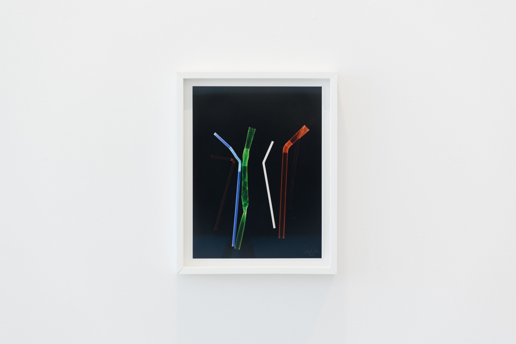 In "Circulation", Sandra Vaka’s first exhibition at BGE Contemporary Art, she explores how this seemingly trivial plastic object—the drinking straw—has shifted in symbolism: from representing celebration, euphoria, and innocent childhood, to becoming an icon of overconsumption and man-made environmental destruction. She highlights the straw as a cultural battleground—both banned and defended, mocked and celebrated—using it as an entry point to reflect on contemporary complexities around the body, consumption, and nature. The exhibition presents both new and earlier works in the form of photographs, photograms, and sculptural pieces, all revolving around this object. By elevating the straw through repetition, scaling, and aesthetic manipulation, she reveals the dual nature of the consumer item: at once temporary and constant, excessive and essential.