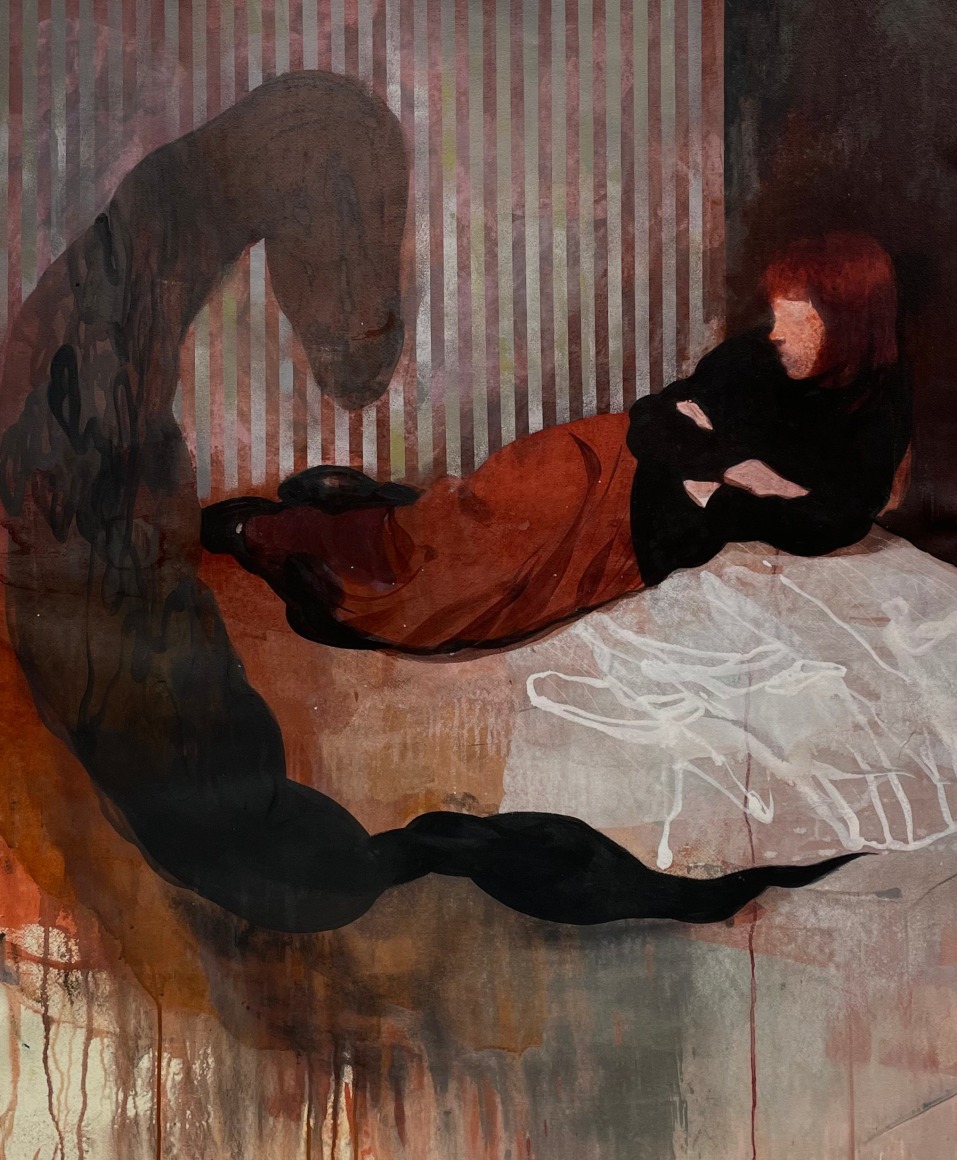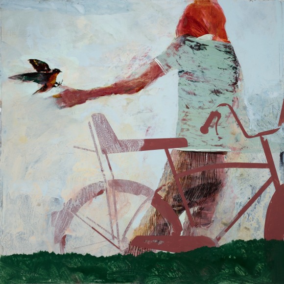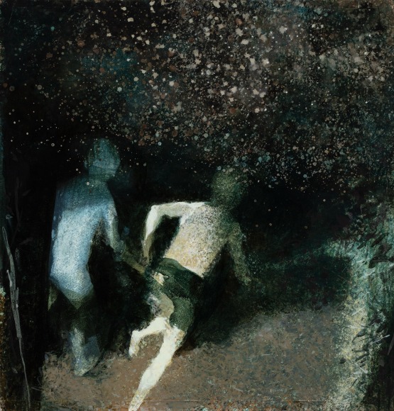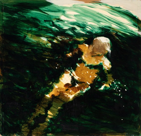 Isteden skjer det en overgang. Ordene som har svirret i hodet i ti måneder har på snedig vis omdannet seg til bilder. Nye bilder. Jeg har dem på tunga. Men de krever en annen metode enn min innarbeidete teknikk, som er eggoljetempera på lerret. De krever større hurtighet og improvisasjon. Og risiko.